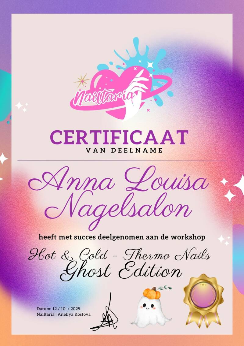 Bij Nailtaria bieden we nu een uitgebreid aanbod aan nail art workshops, zowel 1-op-1 als digitale versies. Na het afronden van elke workshop ontvang je een digitaal certificaat van deelname.